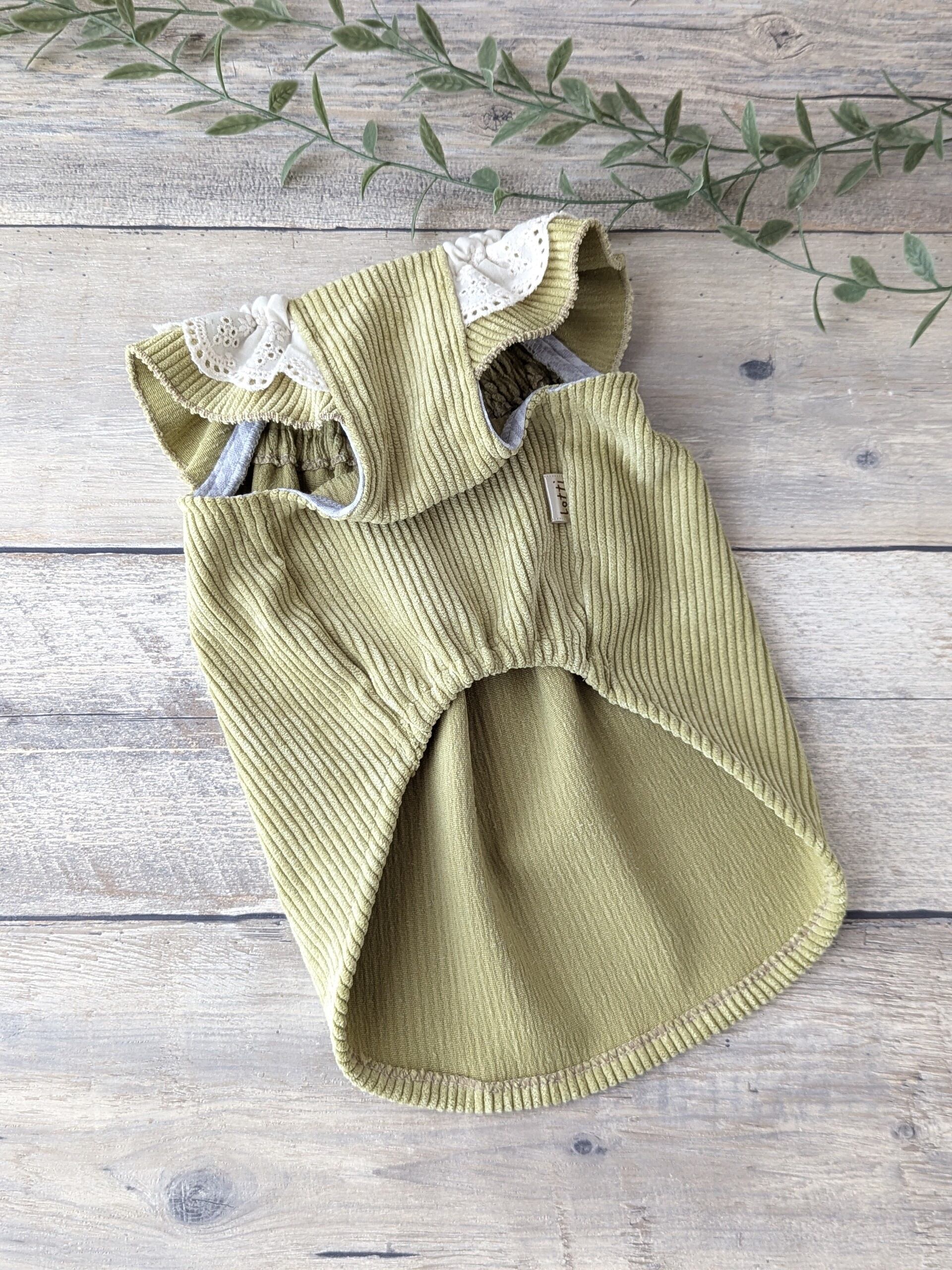 【3Sサイズ】首がぐいーんとコーデュロイスモック うぐいす色