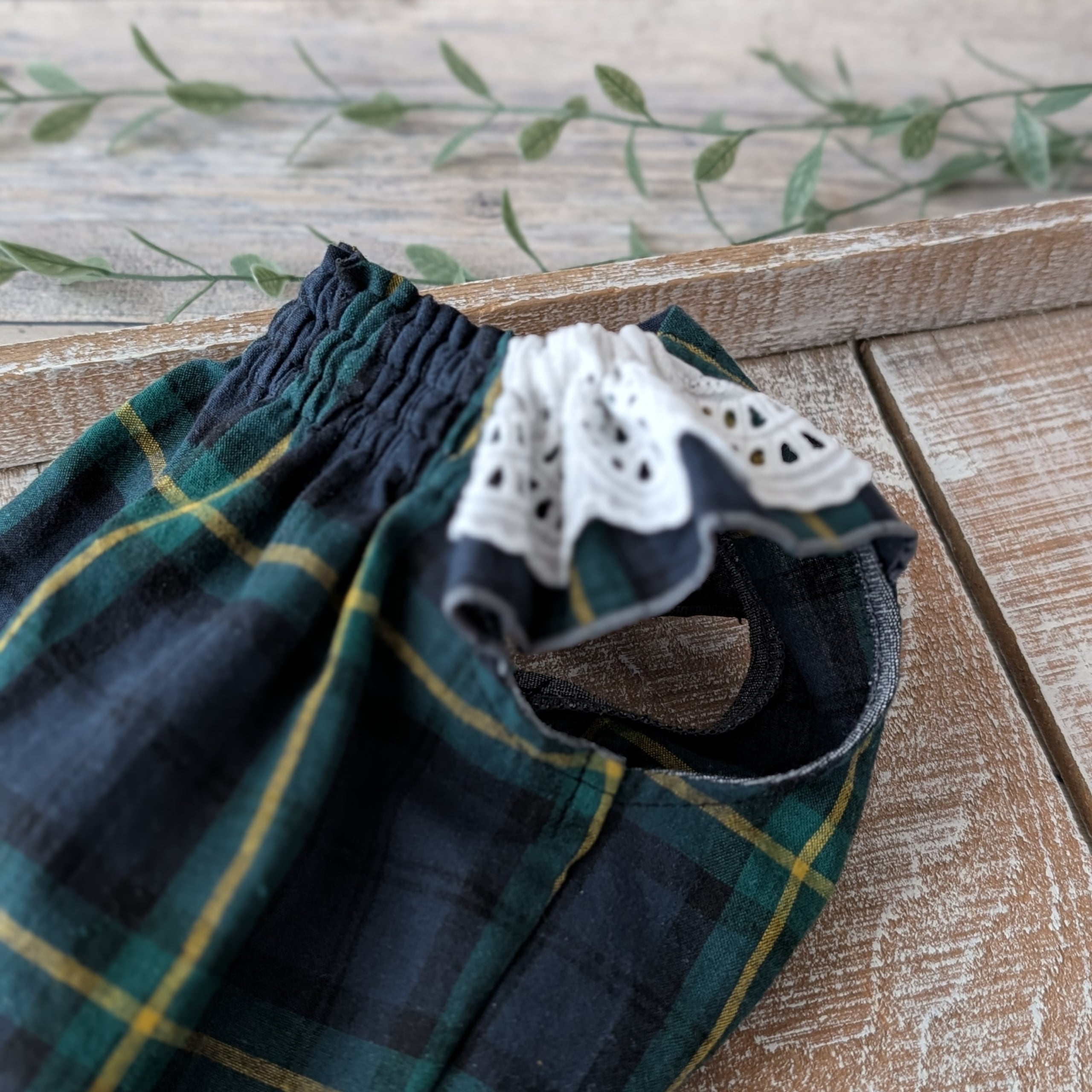 【SSサイズ】麻綿の素材感が気持ちいい!チェックスモッグ グリーン